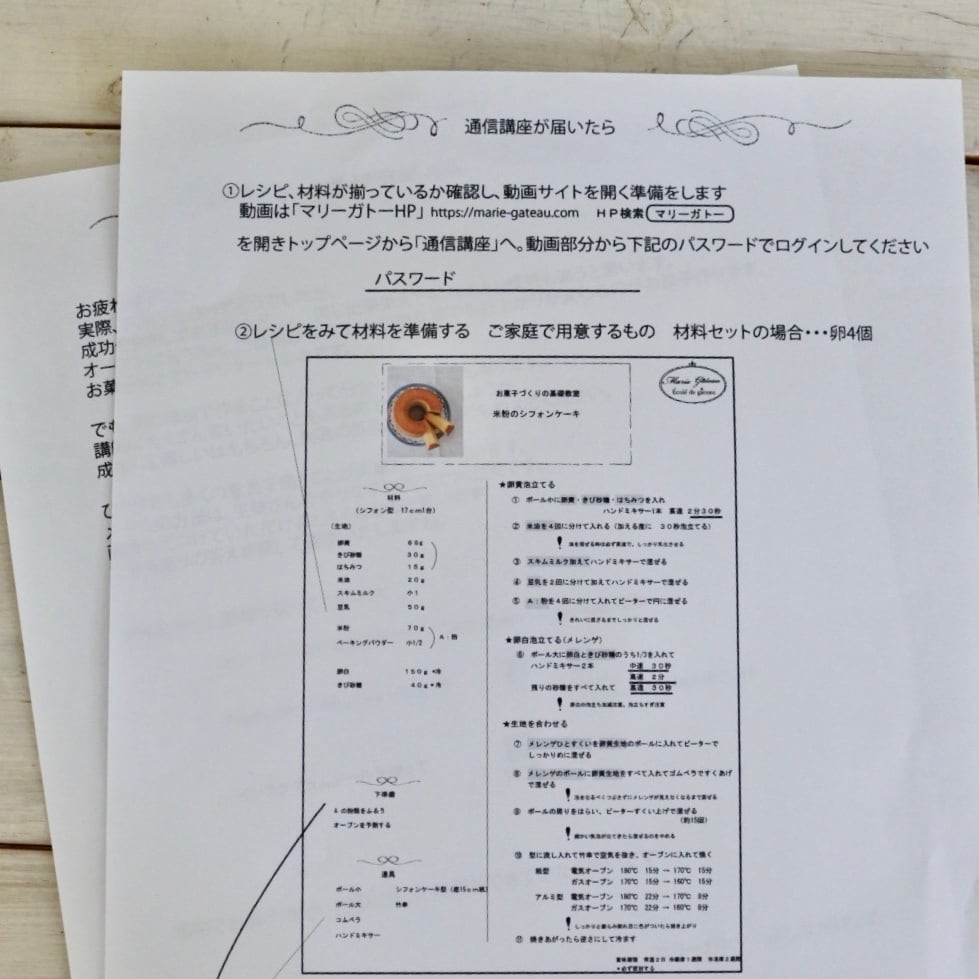 レシピと動画パスワードを郵送にて送ります。お好きな時にご自宅でお作り下さい。質問等はいつでも自由にできます。